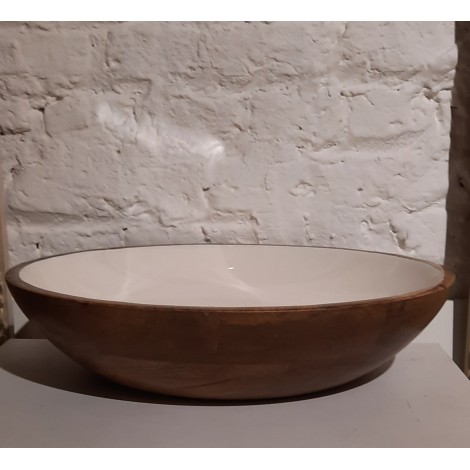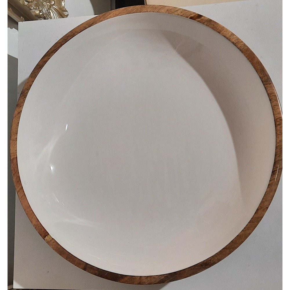 Saladier en manguier décor blanc 35cm