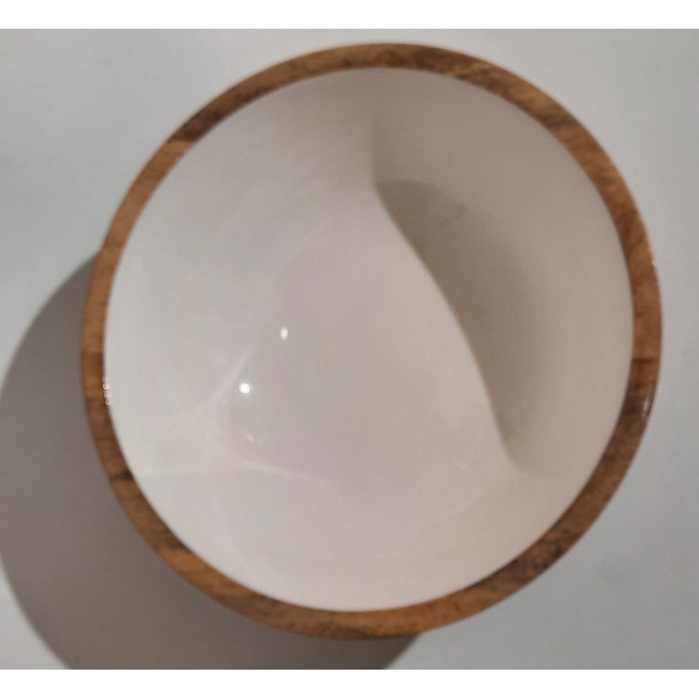 Saladier en manguier décor blanc 24cm