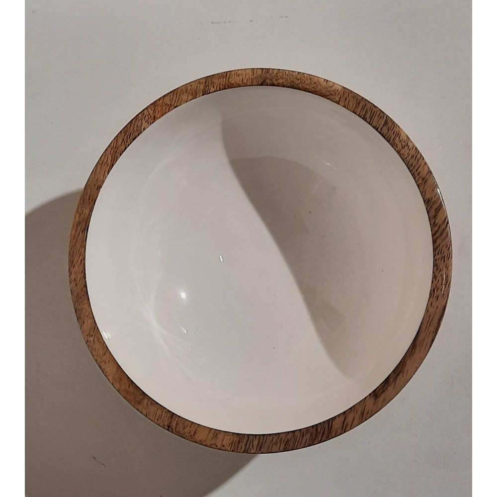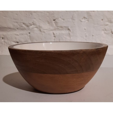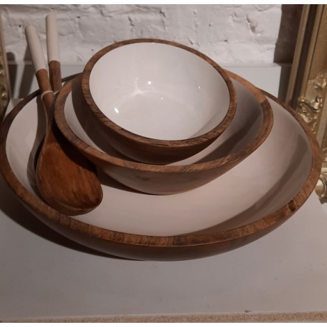 Bol pour salade en manguier, décor intérieur laqué blanc. 17cm, H8cm