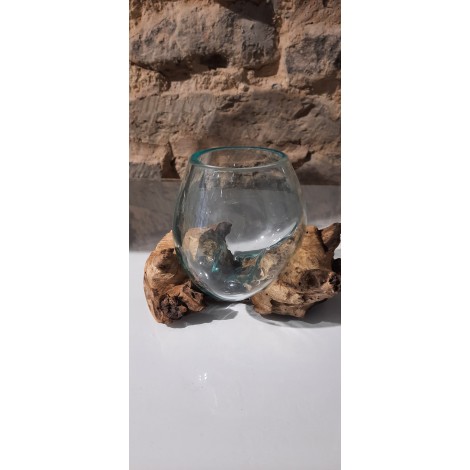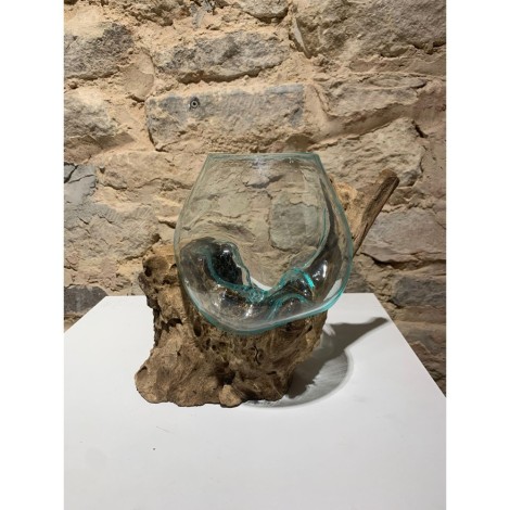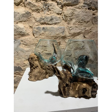A la recherche d'objets de décoration tendance, uniques et originaux, choisissez l'un de nos vases en verre soufflé et moulé sur une racine de teck. L'ensemble est fabriqué de manière artisanale à Bali.