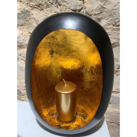 Photophore au design noir et or très tendance. Cré une ambiance luxueuse et tamisée. Il est possible d'y placer des bougies chauffe-plat aux bougies cylindriques.