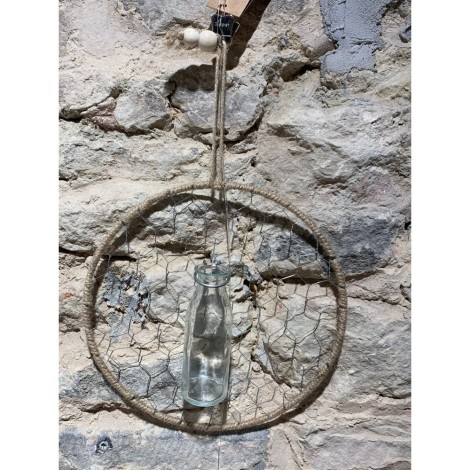 Créer une ambiance hugge avec ce mobile 100% nature. En métal, chanvre et verre, vous pouvez y placer des fleurs naturelles ou séchées, toutes les possibilités s'offrent à vous.
