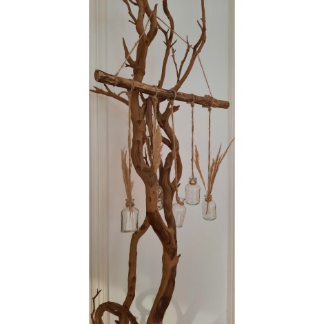 Créer une ambiance hugge avec ce mobile 100% nature. Bois recyclé pour le support, corde de chanvre et verre recyclé. Plantes naturelles, sèches ou les deux ensemble, toutes les possibilités s'offrent à vous.