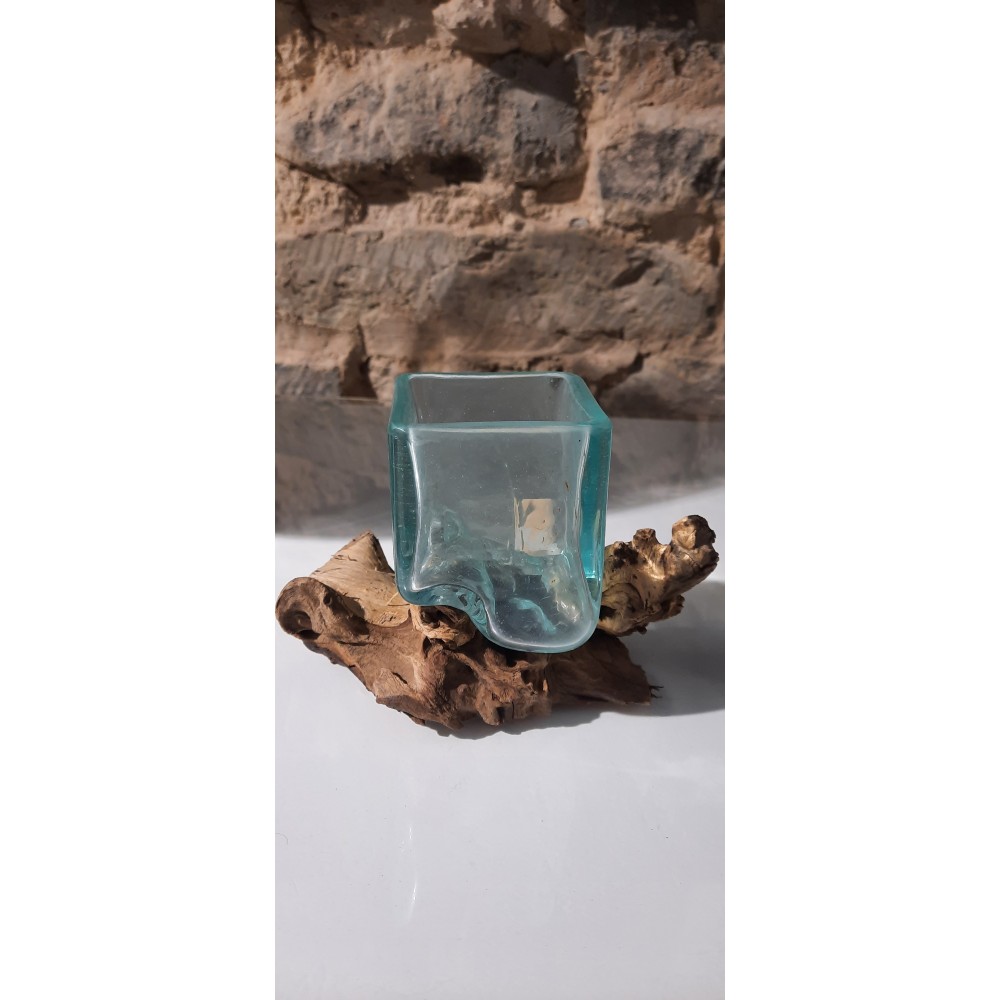 A la recherche d'objets de décoration tendance, uniques et originaux, choisissez l'un de nos vases en verre soufflé et moulé sur une racine de teck. L'ensemble est fabriqué de manière artisanale à Bali.